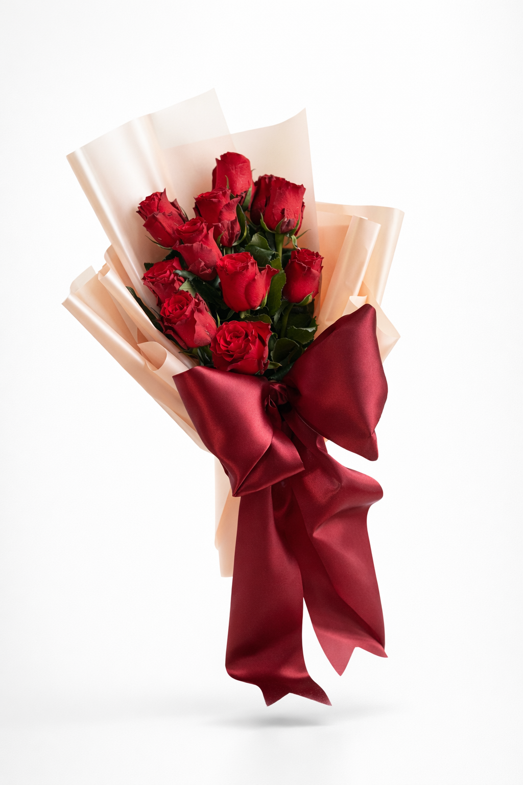 Csodaszép és szuper trendi óriás masnival díszített 11 szálas vörösrózsa csokor